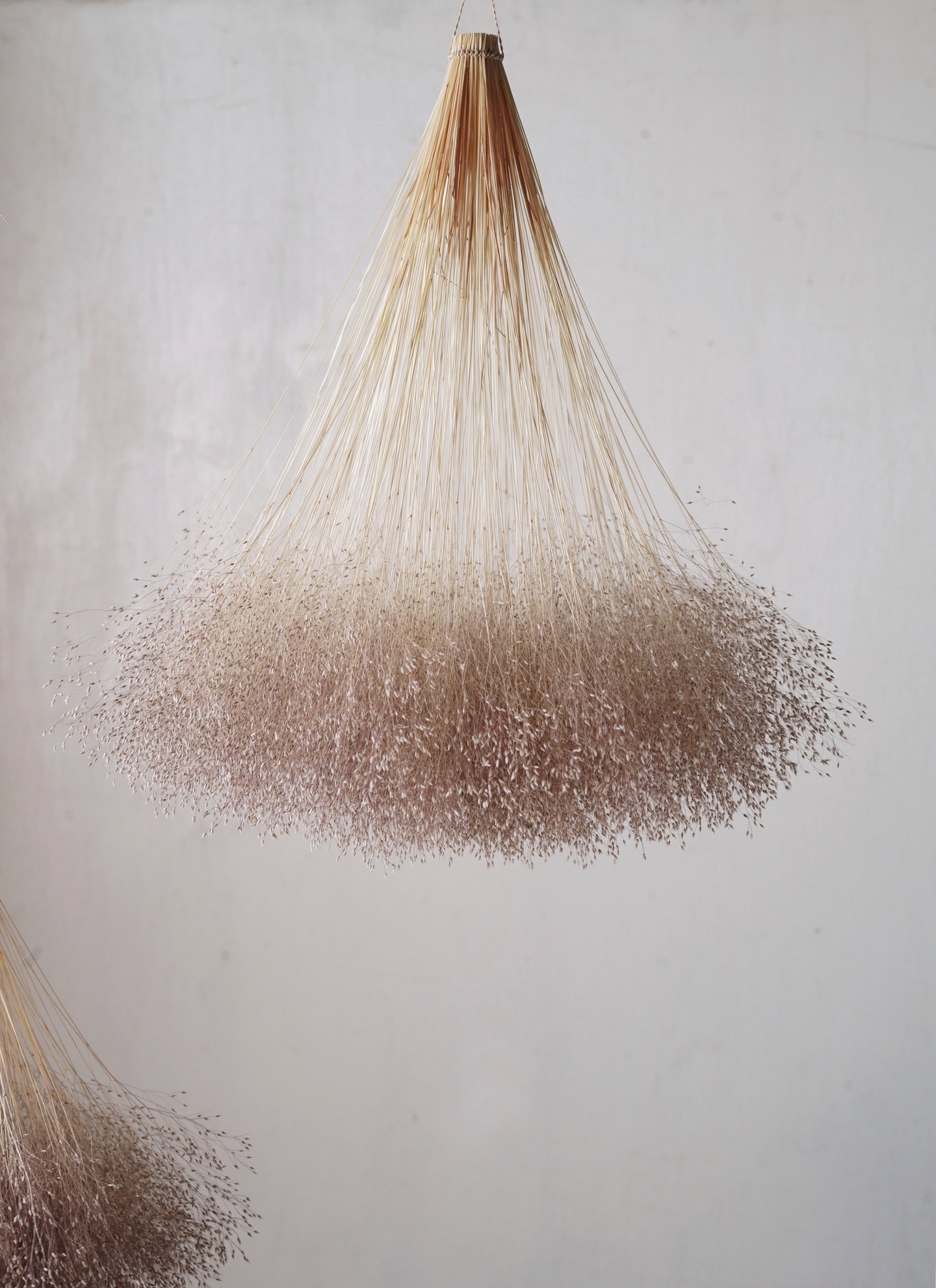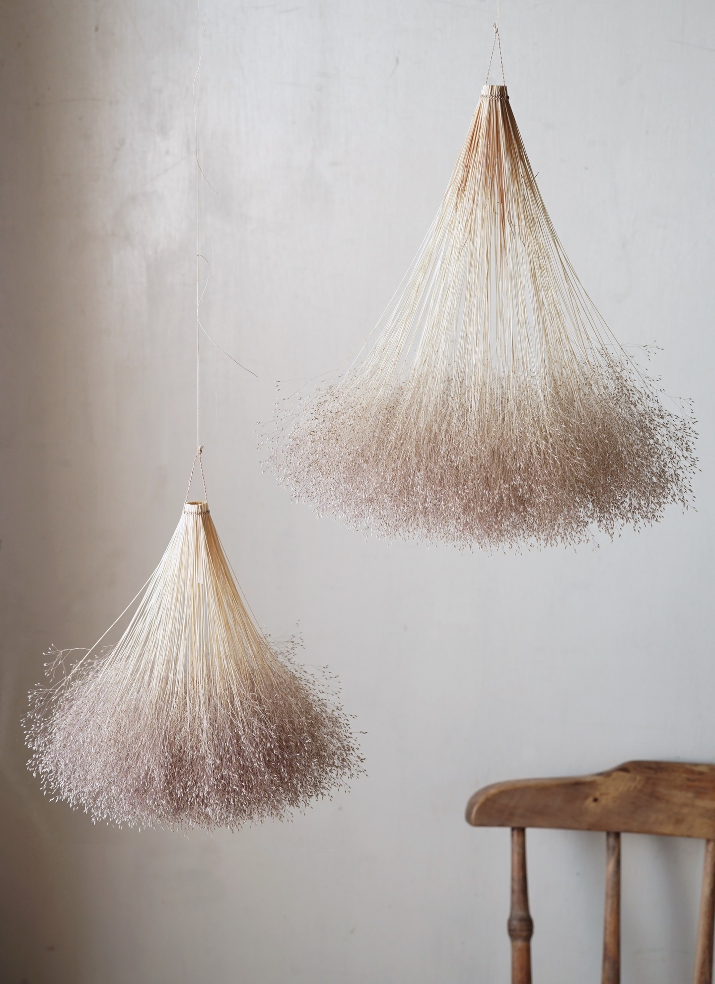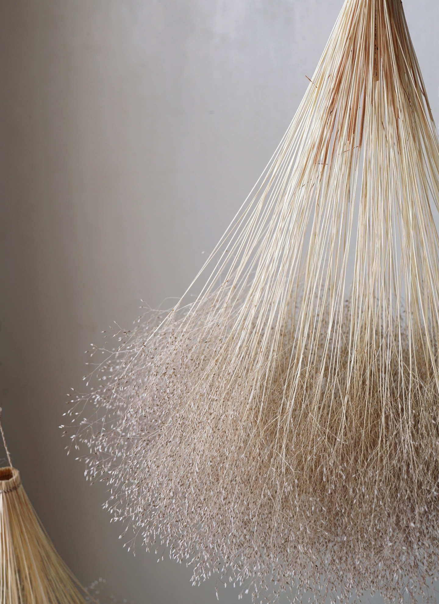 このHNS-29は、小穂がまだ広がっていない若い時の花糠薄。糸のような茎が長く育った同じ長さのものを集めてつくられる。
