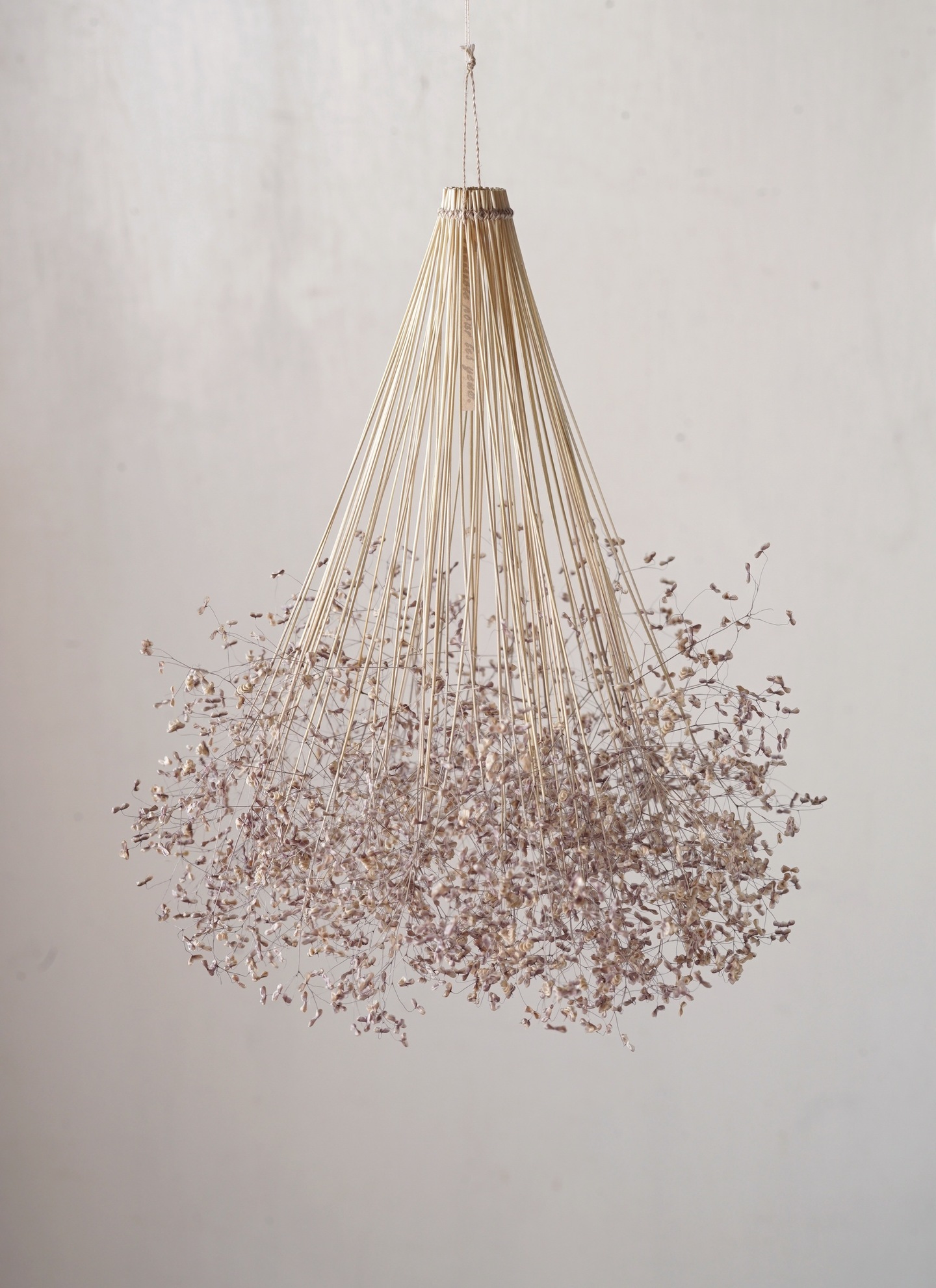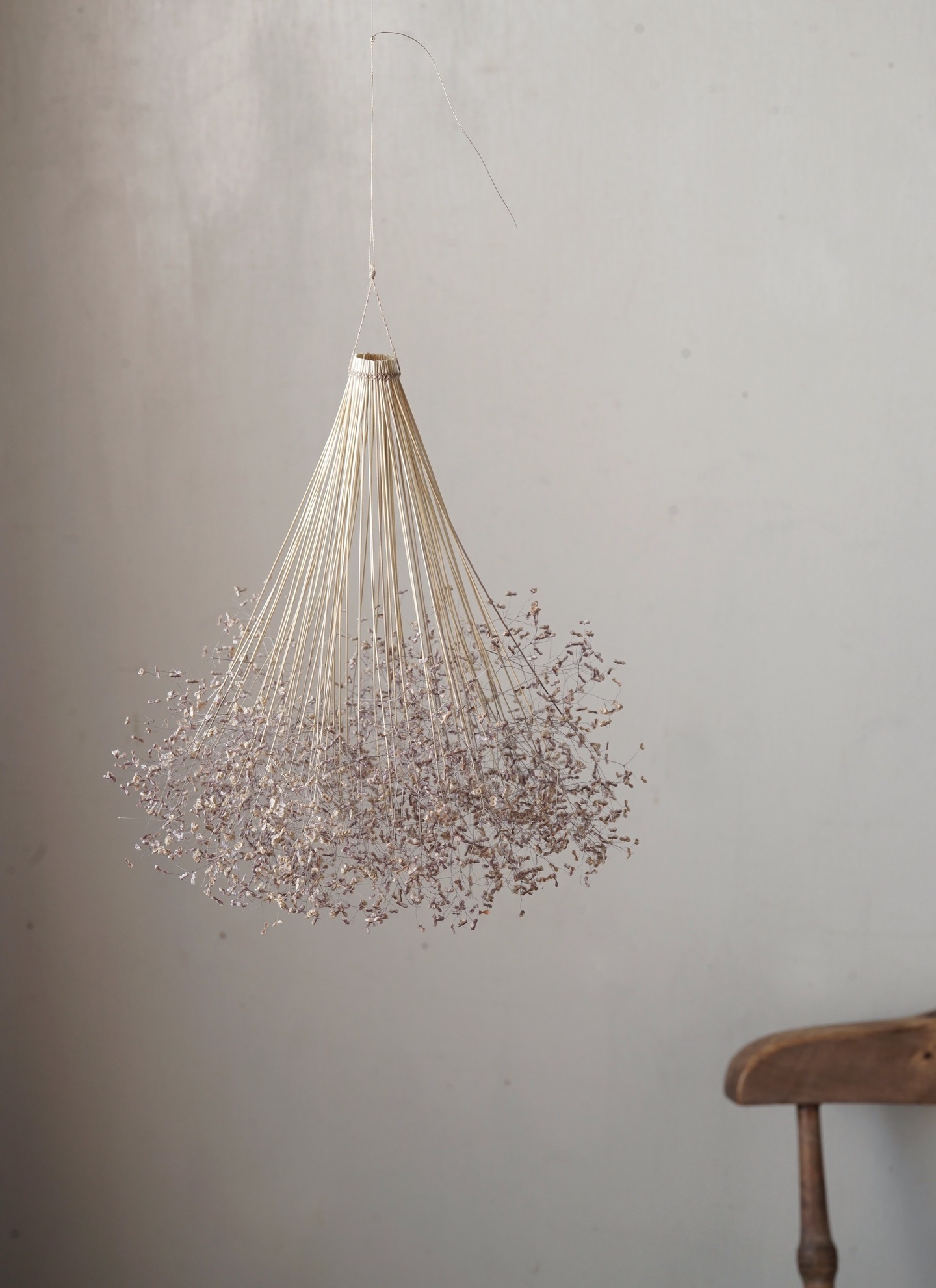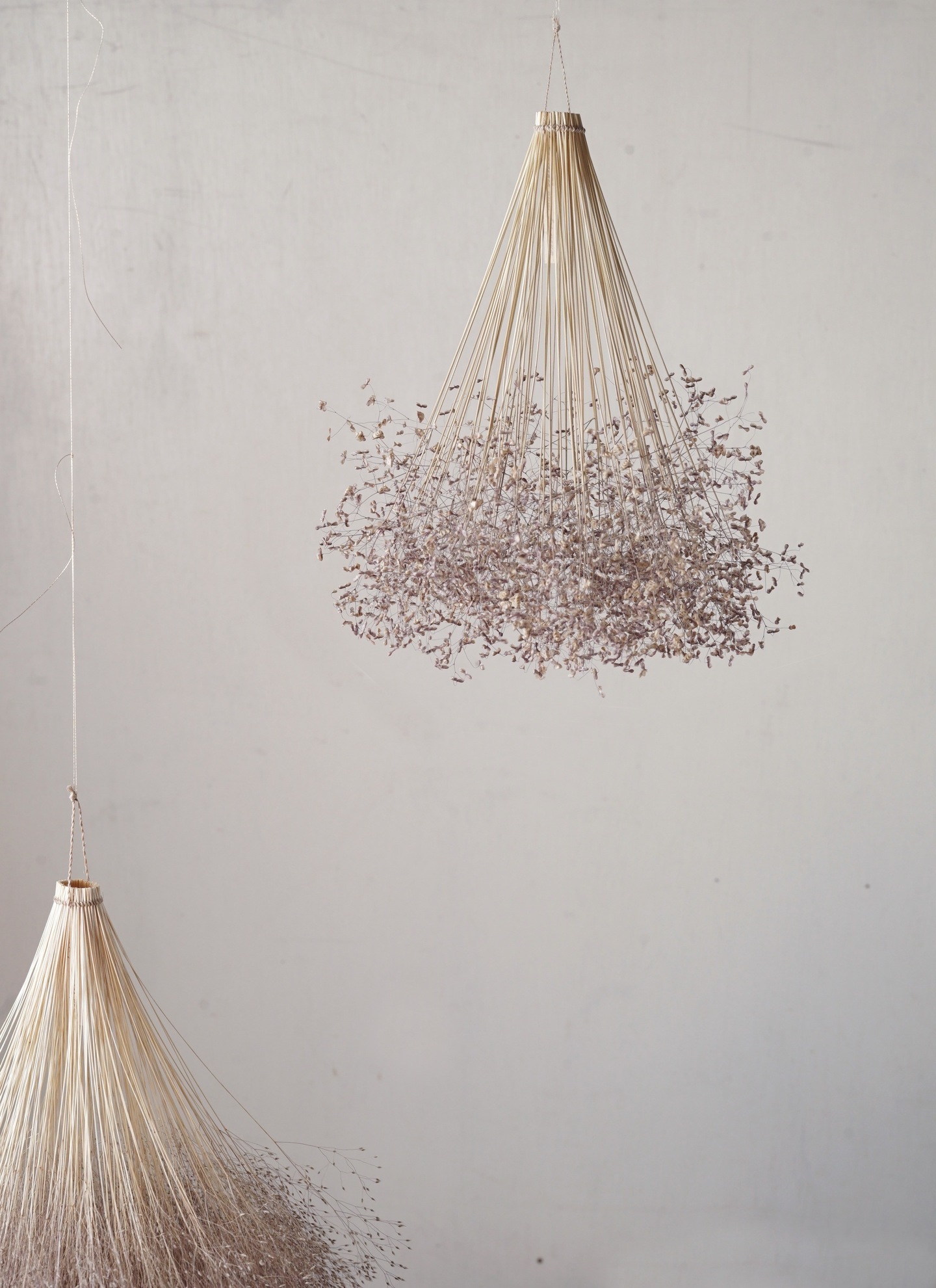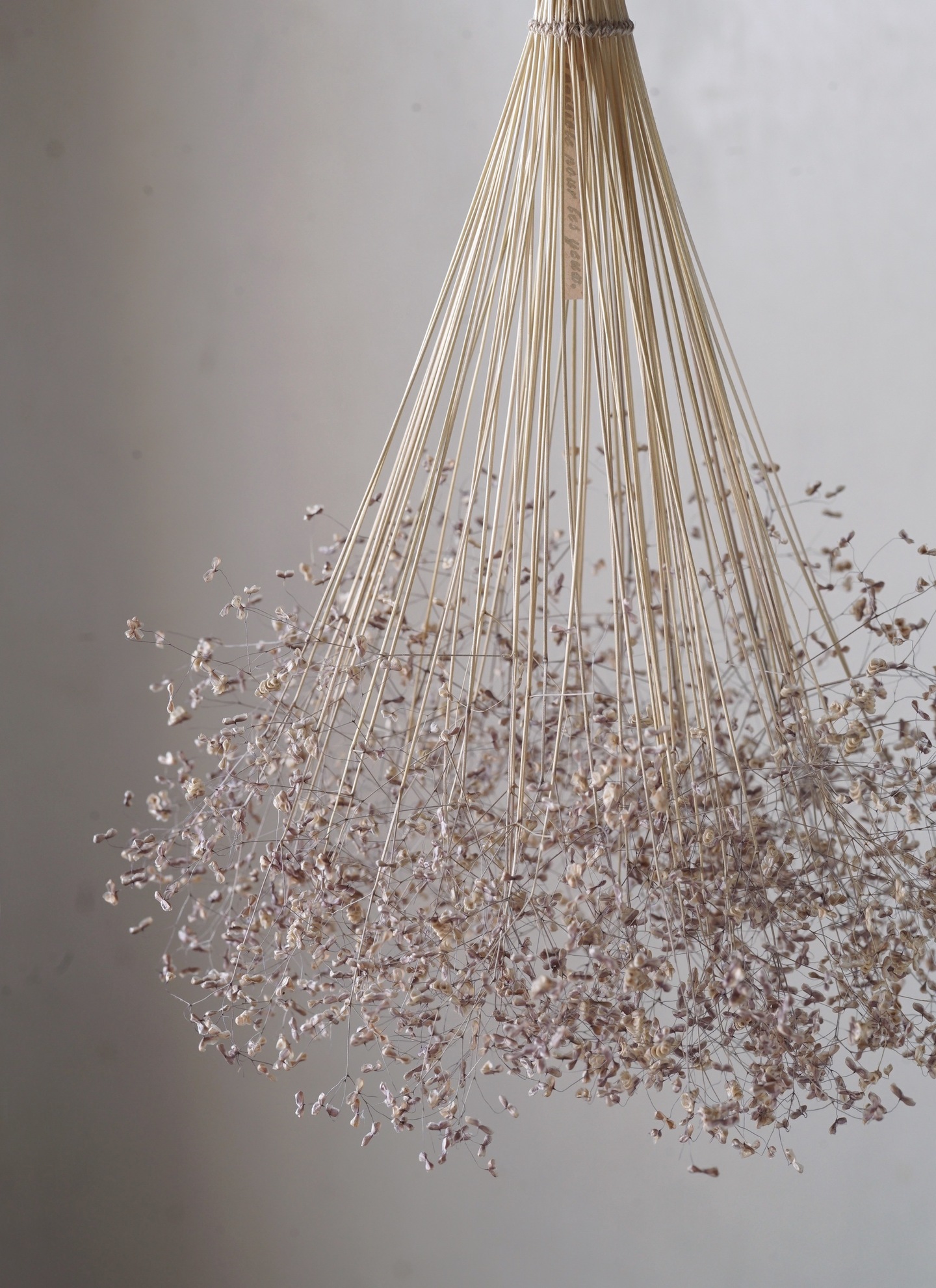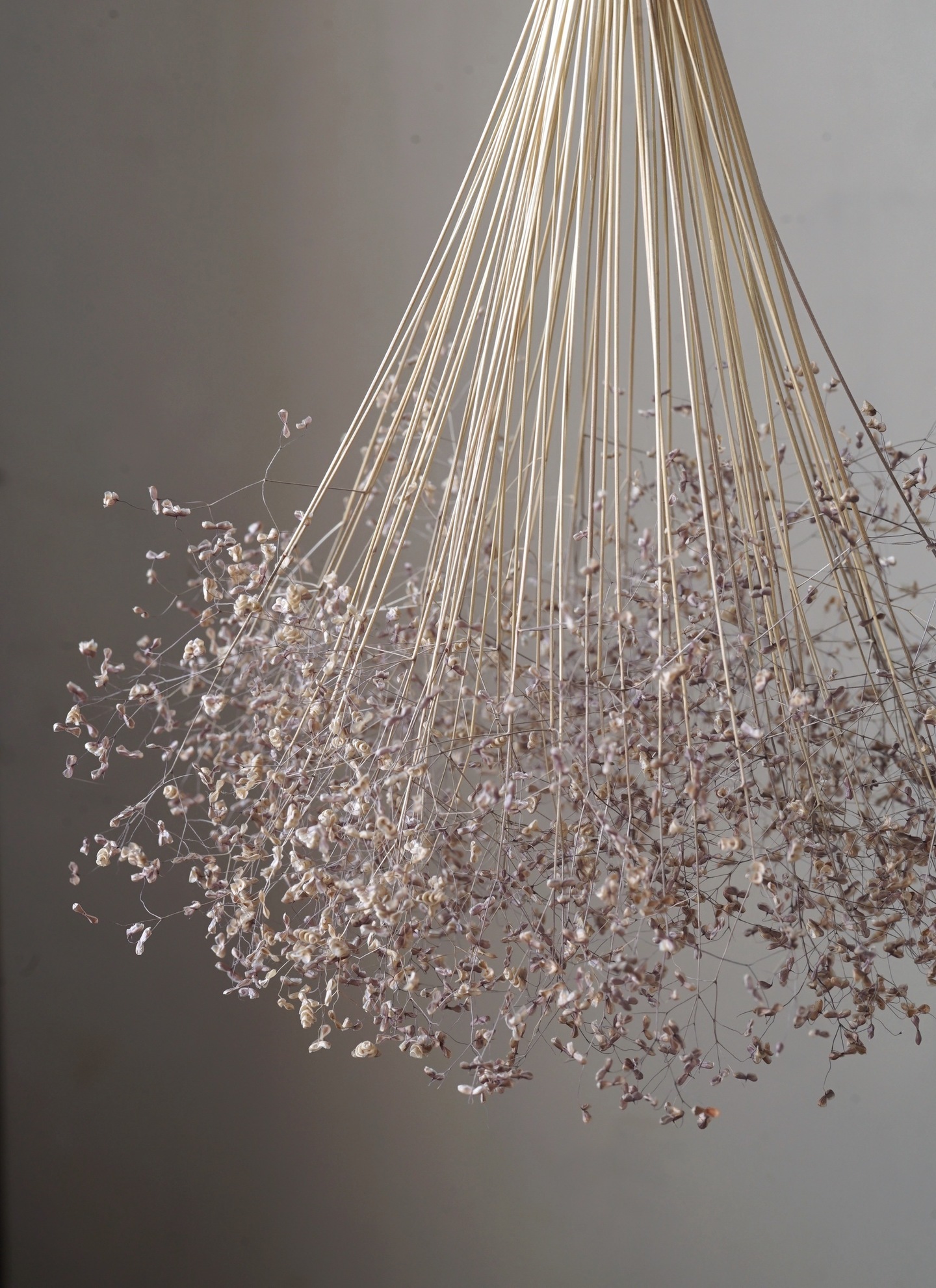 姫小判草のしっかりとした茎は直線的で、オブジェには凛とした美しさがある。