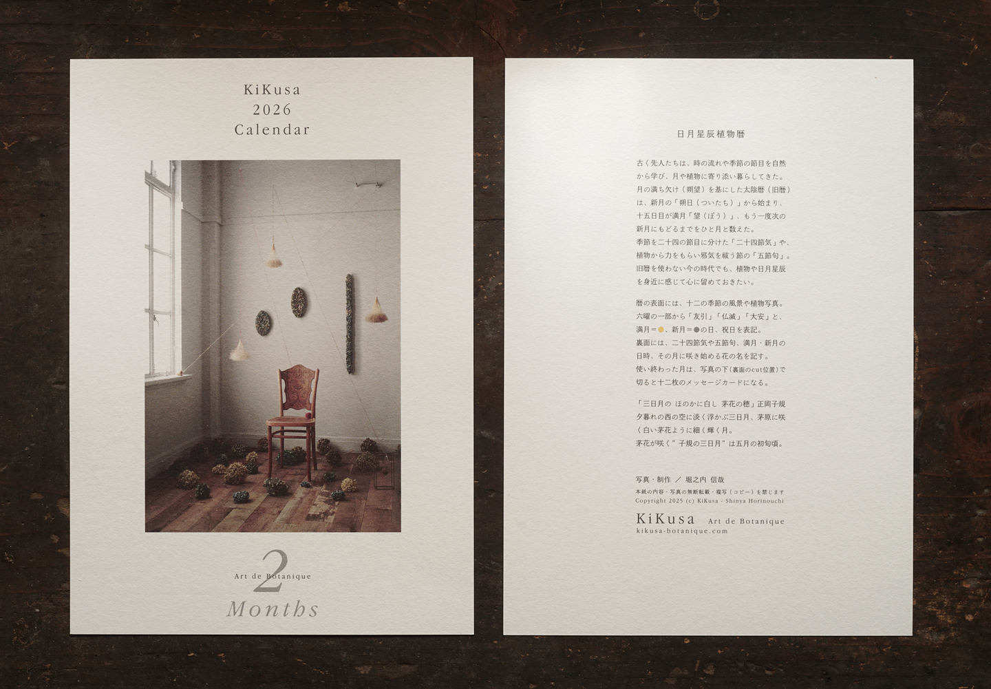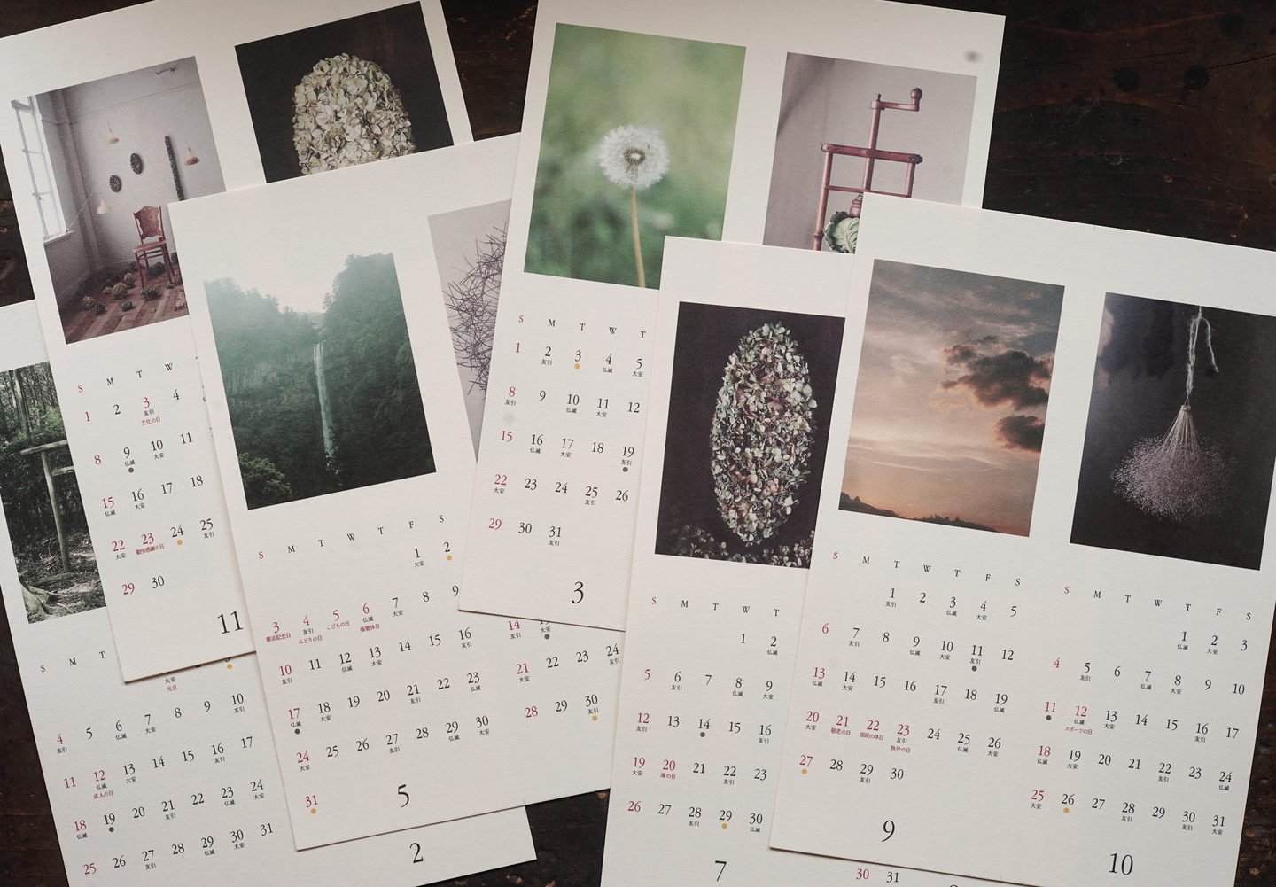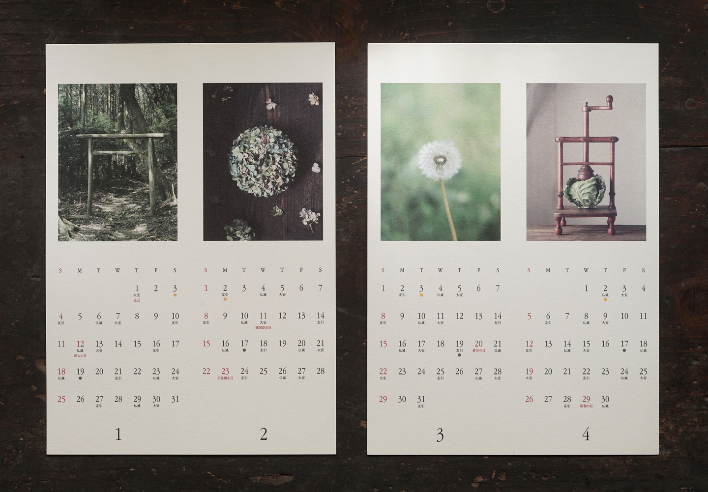 裏面には、二十四節気・五節句・雑節、満月・新月の日時、その月の野山に咲き始める花」の名を記す。