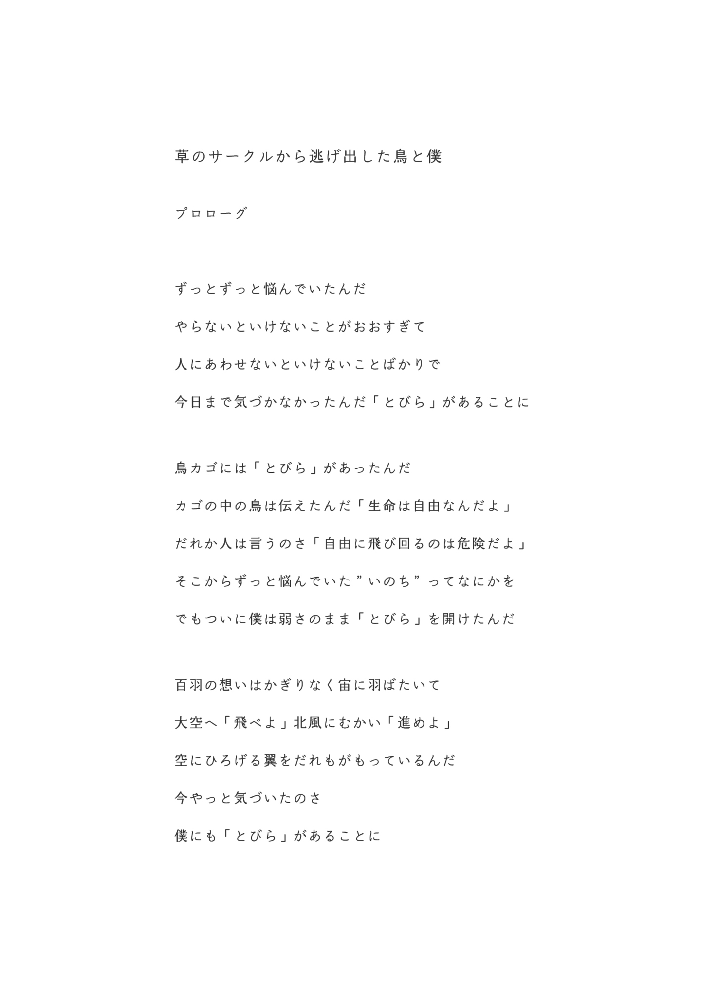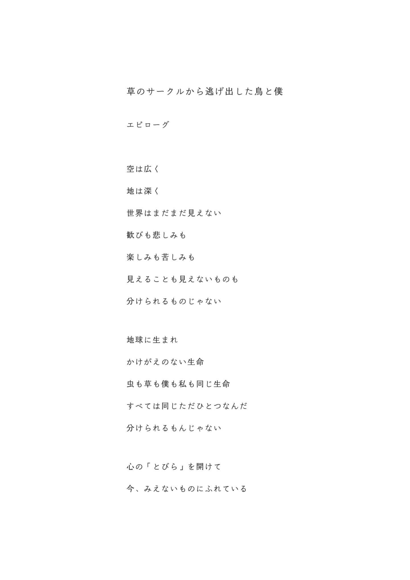 草 の サ ー ク ル か ら 逃 げ 出 し た 鳥 と 僕