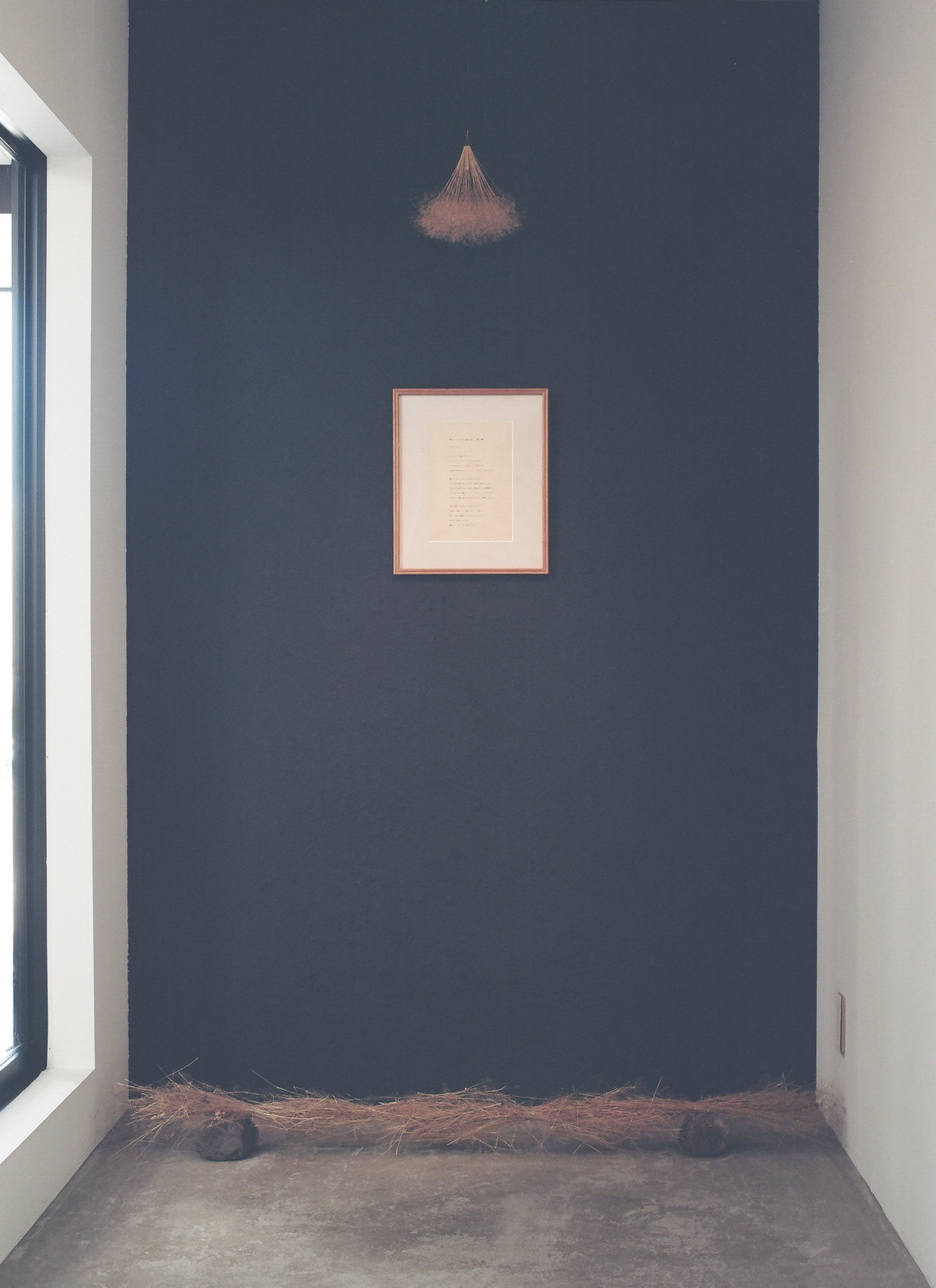 今展は展示空間全体をつかった草と詩文のインスタレーション。