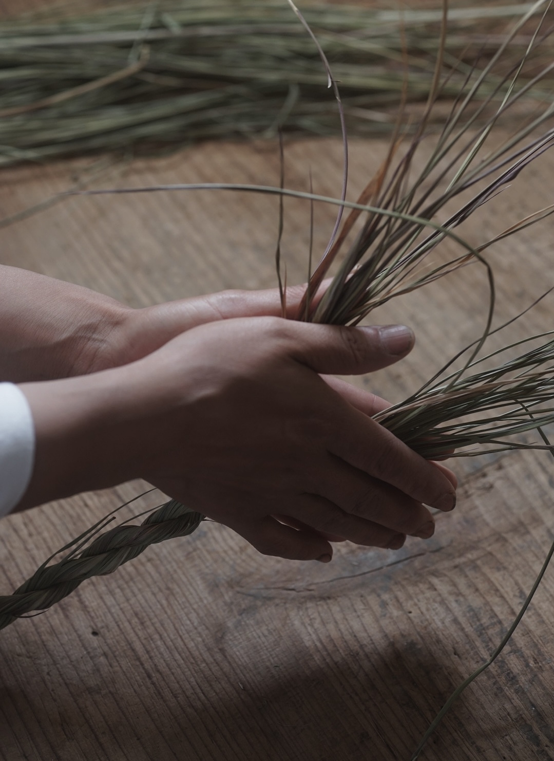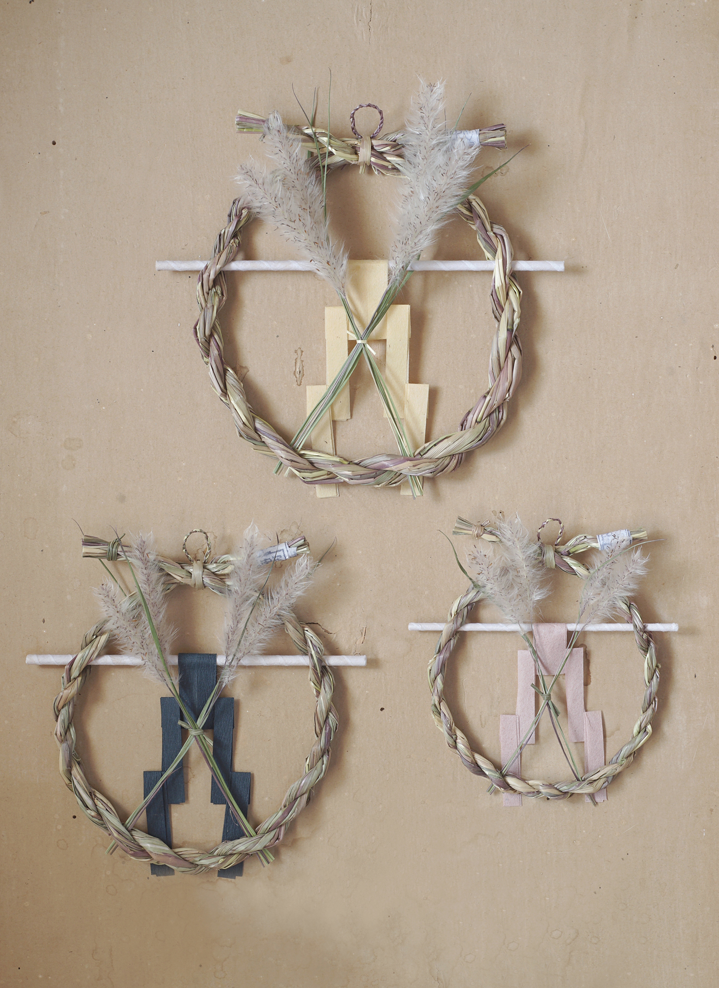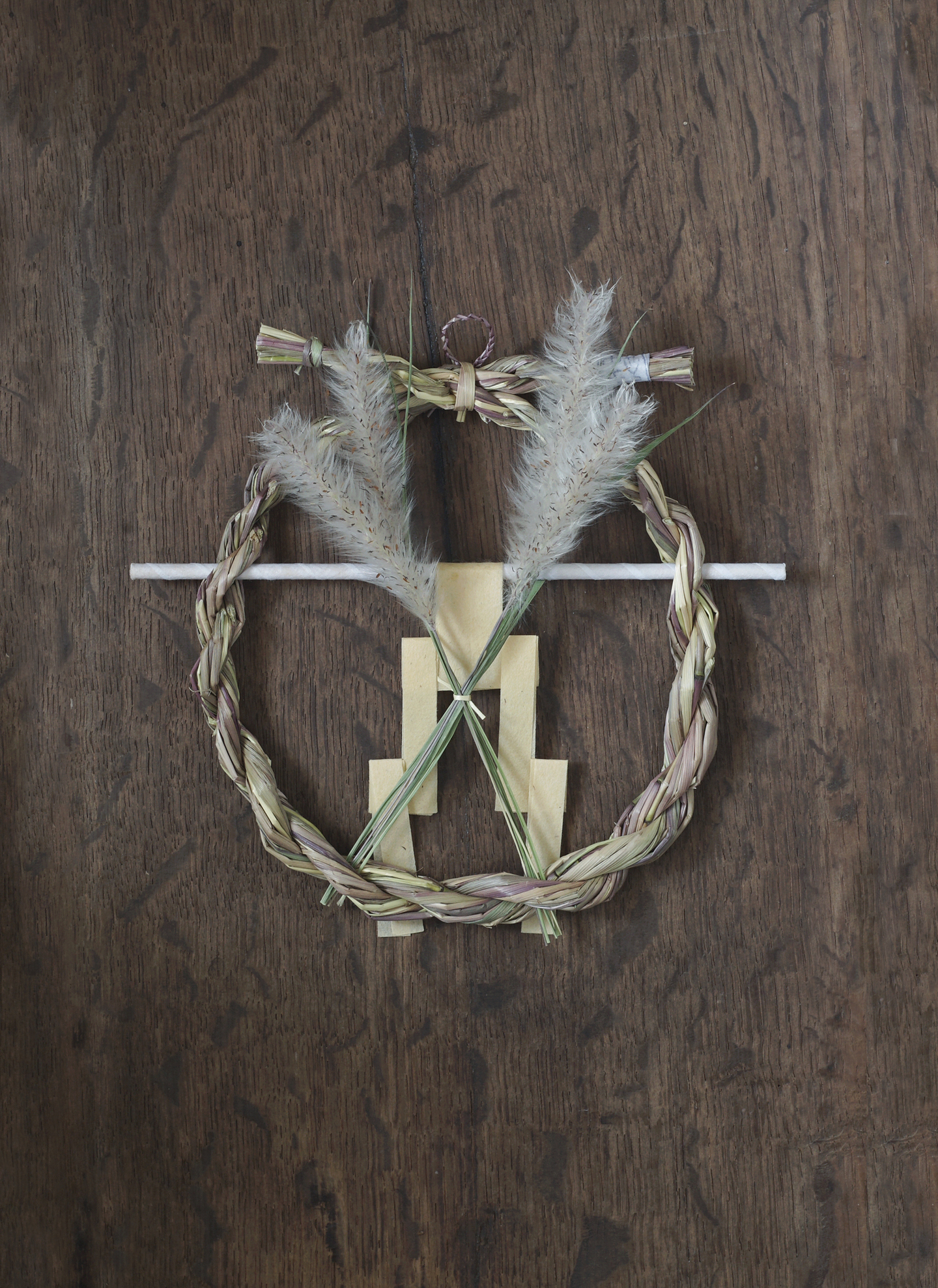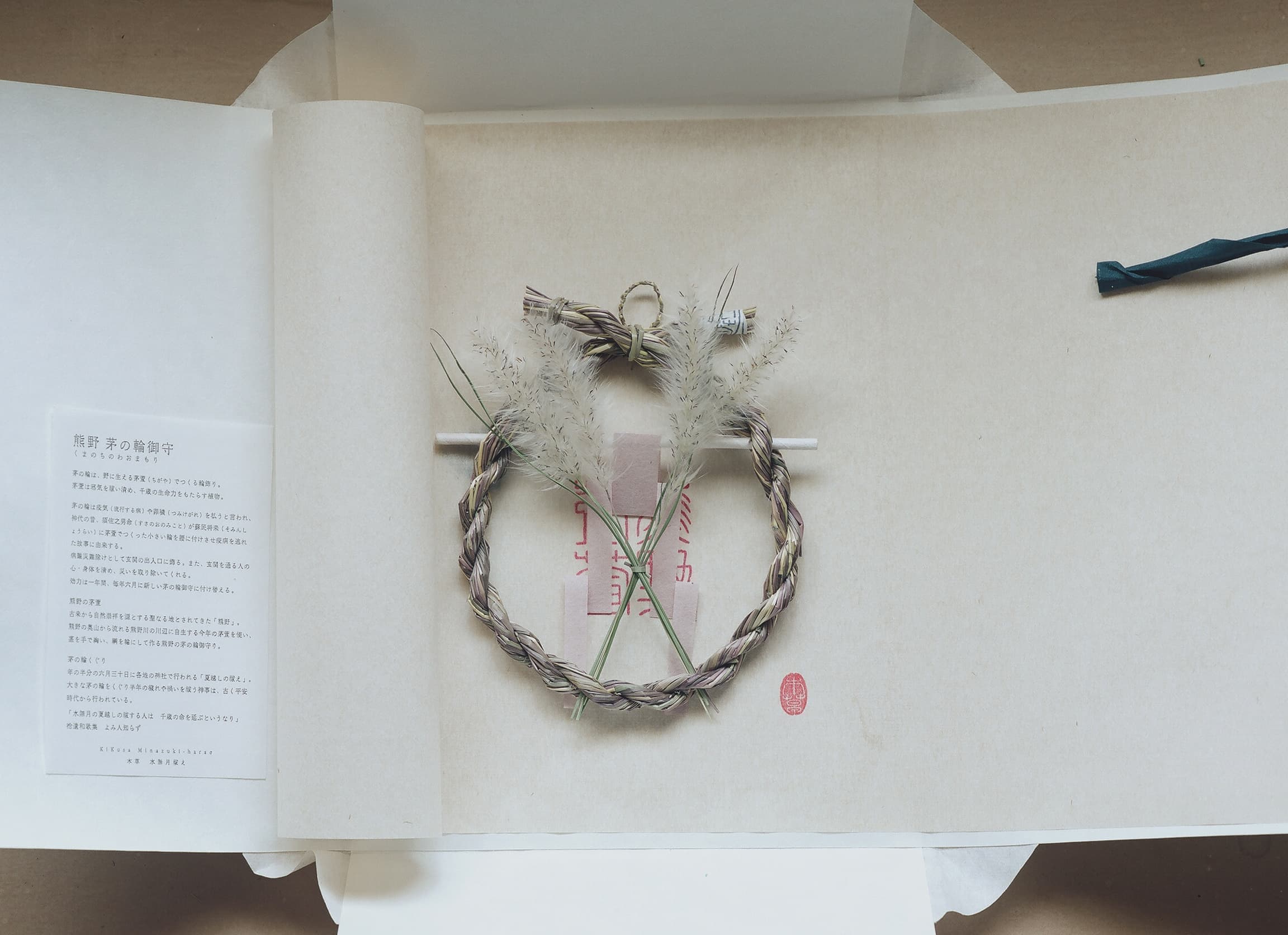 茎や葉を手で綯い、綱を輪にして作る、熊野の茅萱を使った御守り。