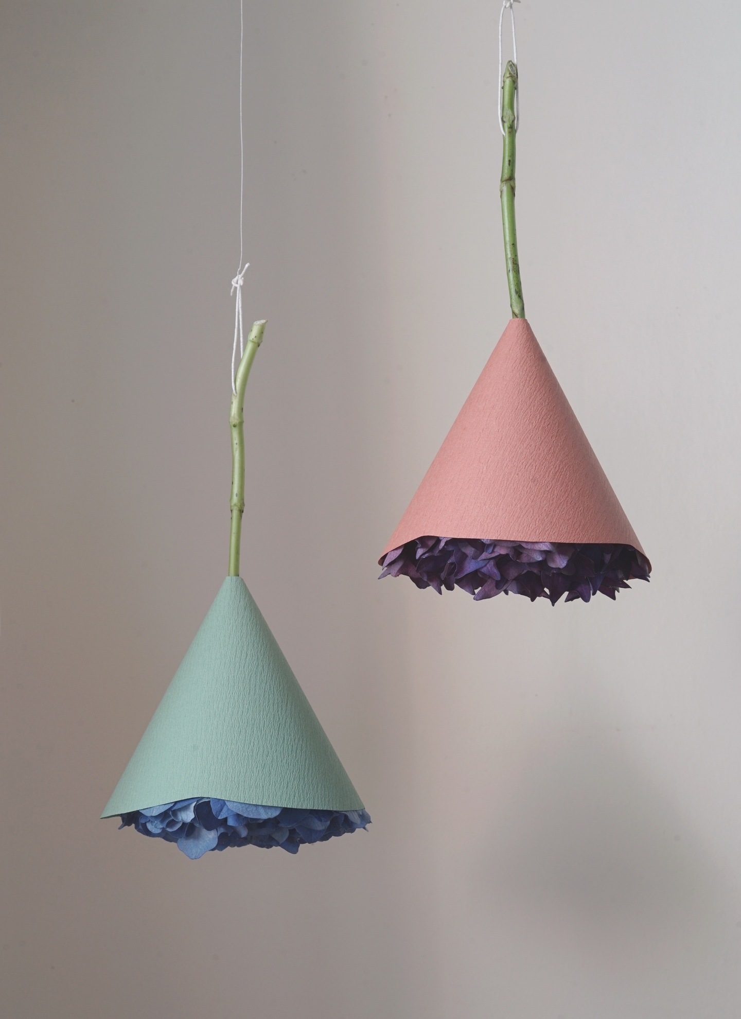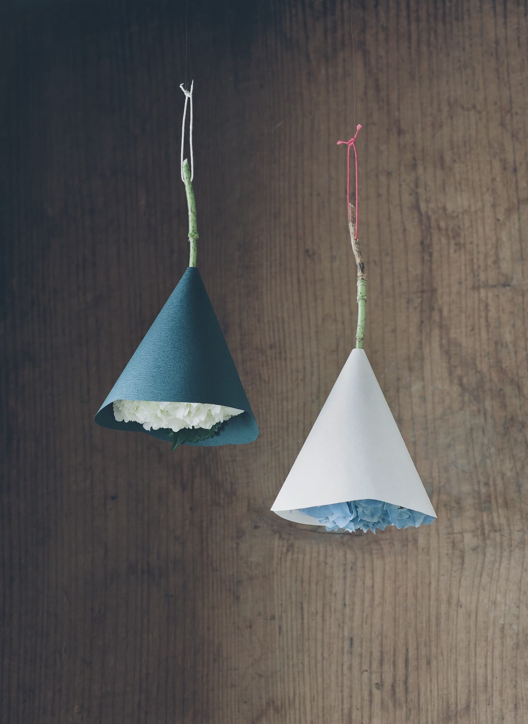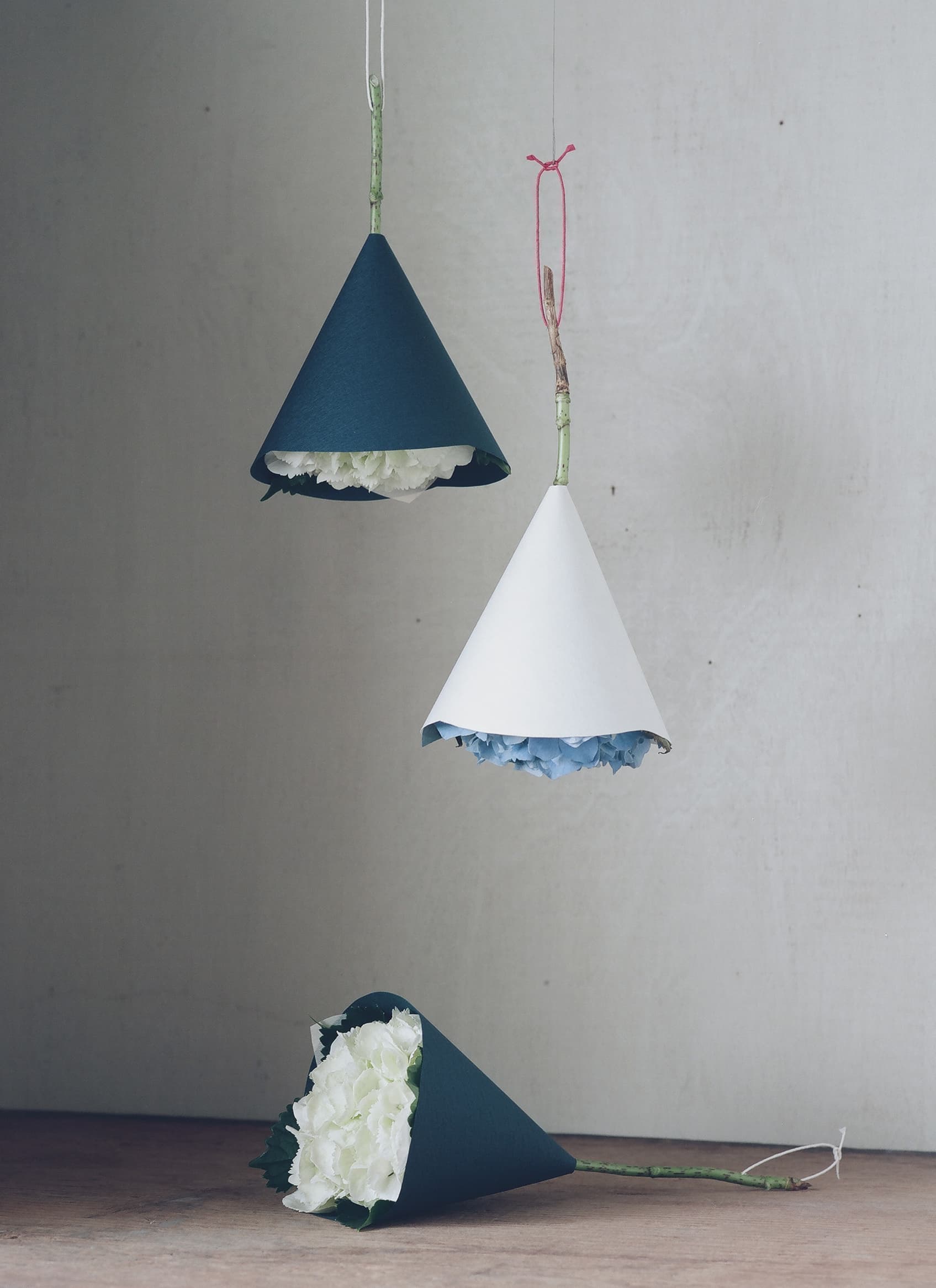 (生花の紫陽花は数日で水分が抜けて萎みます)