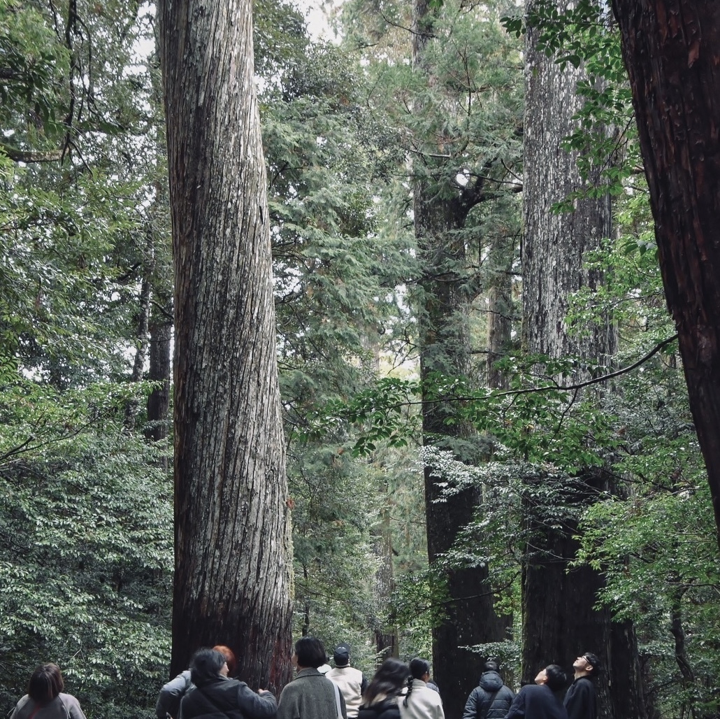 皆でゼロ磁場の”ねじれ杉”を見上げ、人智の及ばない存在に触れ、清流で手を清め、多幸を祈り手を合わせる。