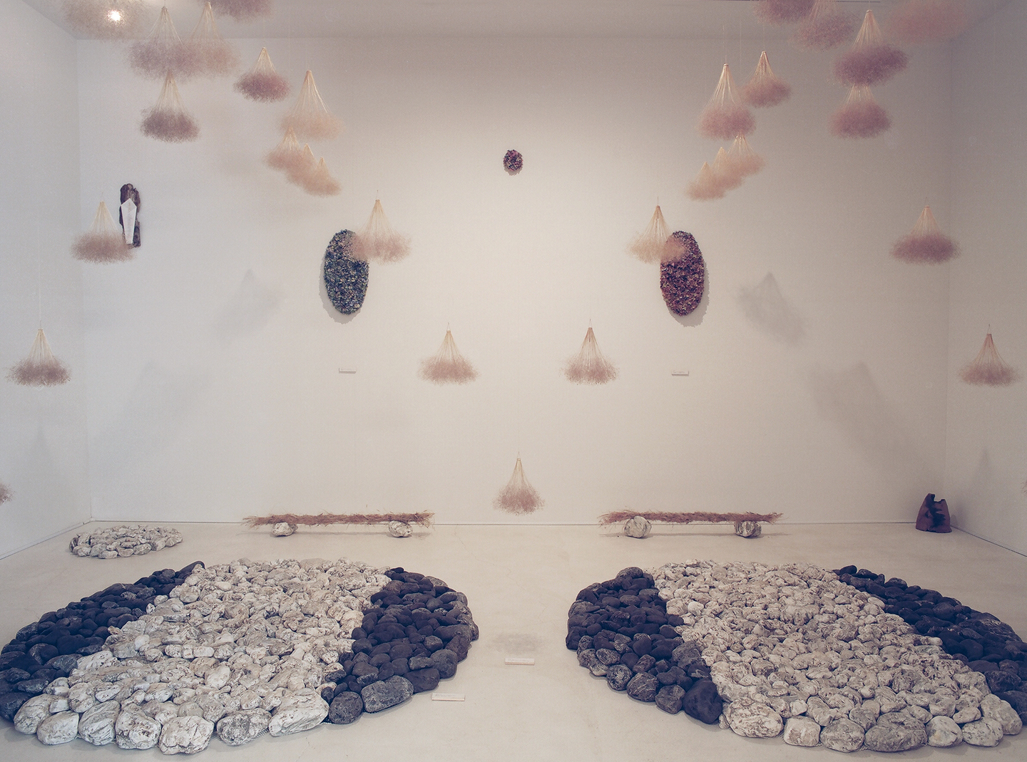 第二章の音楽インスタレーションでは、ミュージアム展示空間に”祈りの精”として降り立った森ゆにさんと田辺玄さんが奏でる音が空間に共鳴する。