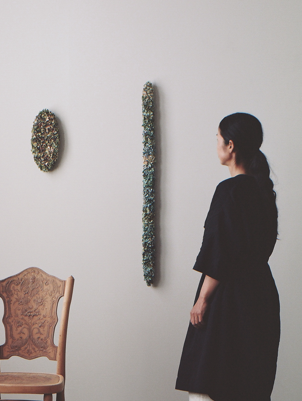 作品 ROSETTE は「草の弱さを感じる美しさ」を象る壁飾り。