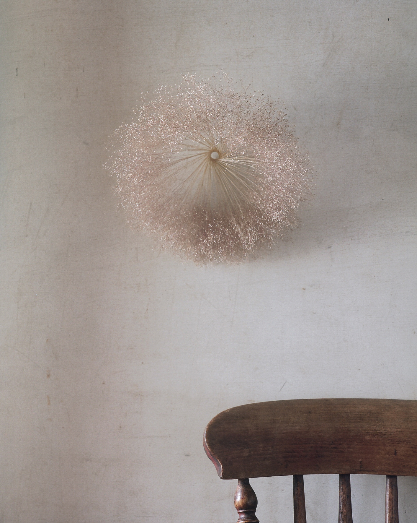 下向きに咲く”花の精”のように壁に飾るオブジェ。