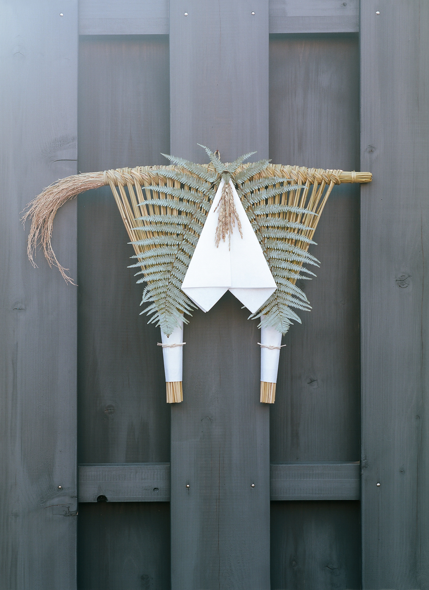 元々は埼玉や群馬で飾られている「オカオカクシ」を木草が再現した注連飾り。