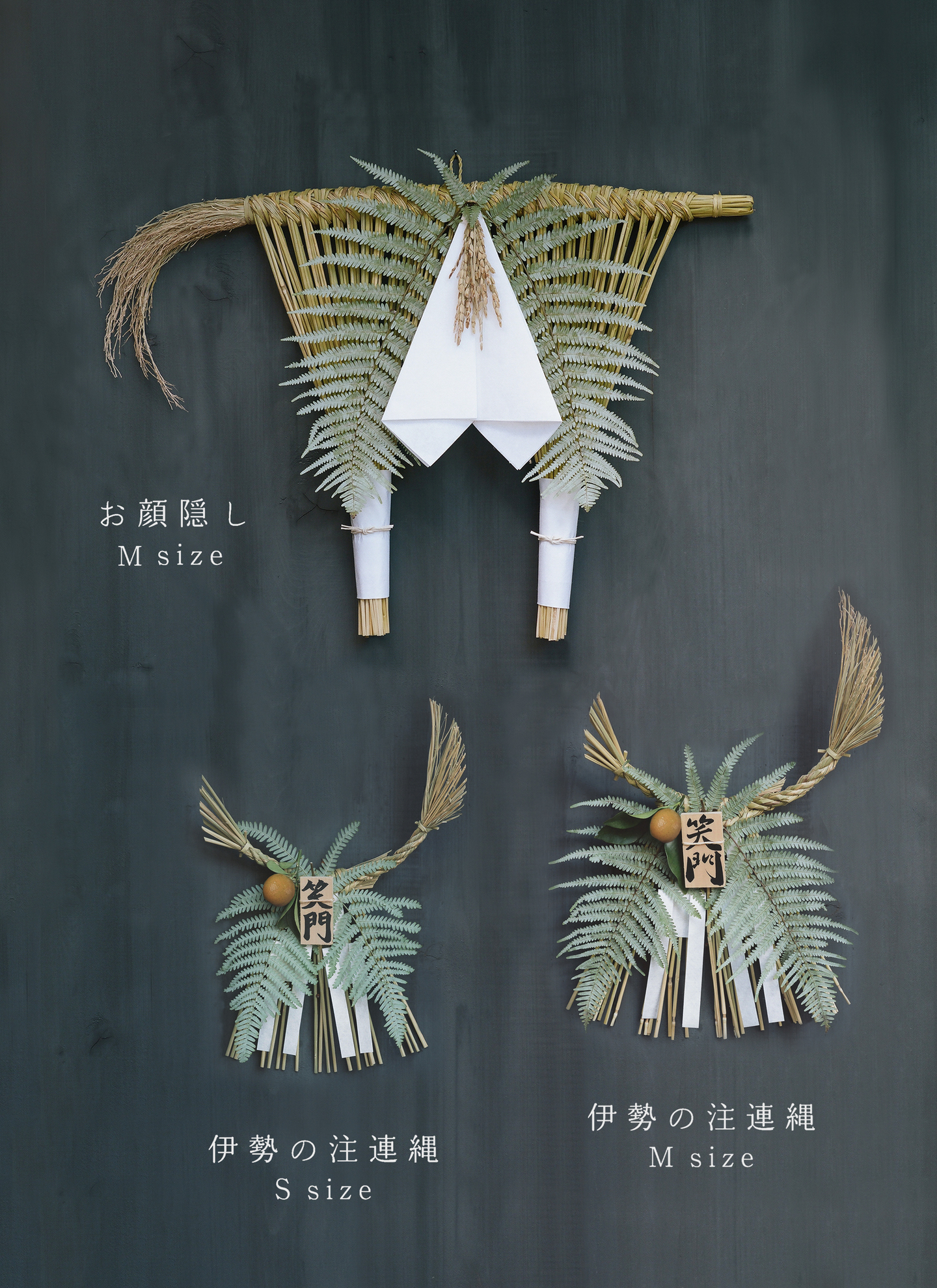 大きさはM、Sの2種類。「お顔隠し M」は「伊勢の注連縄 LL」よりも大きいサイズになる。