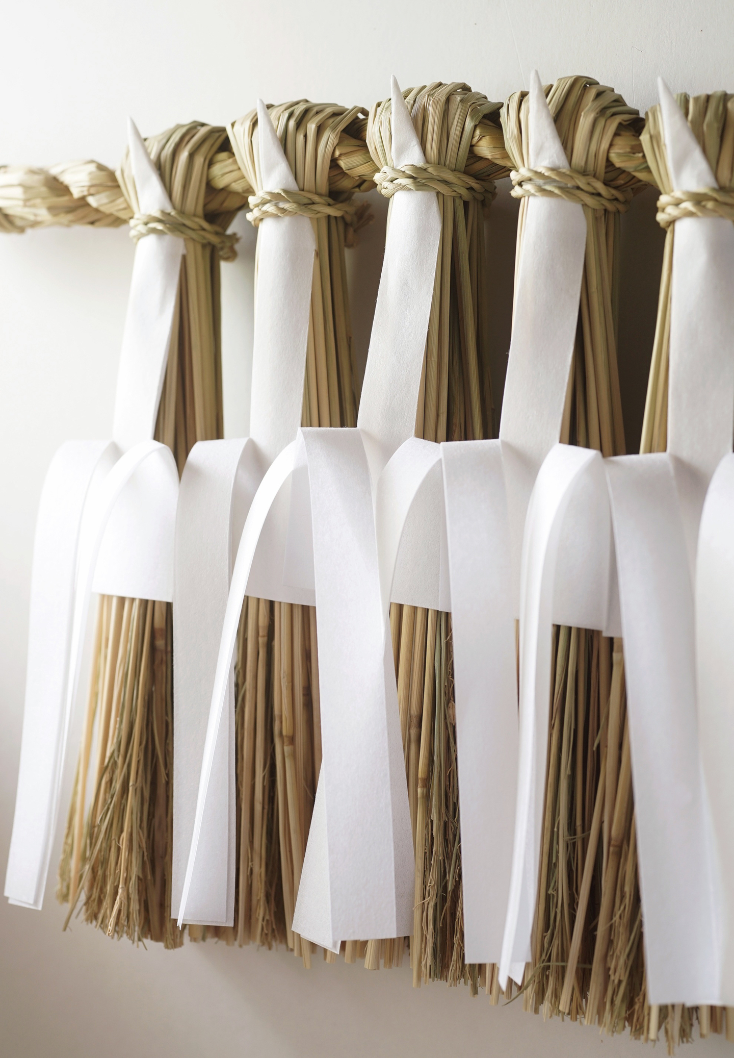 伊勢注連縄は、天(縄)・地(稲垂)・人(紙垂)が簡素に調和して自然と人の繋がりから生まれる形。