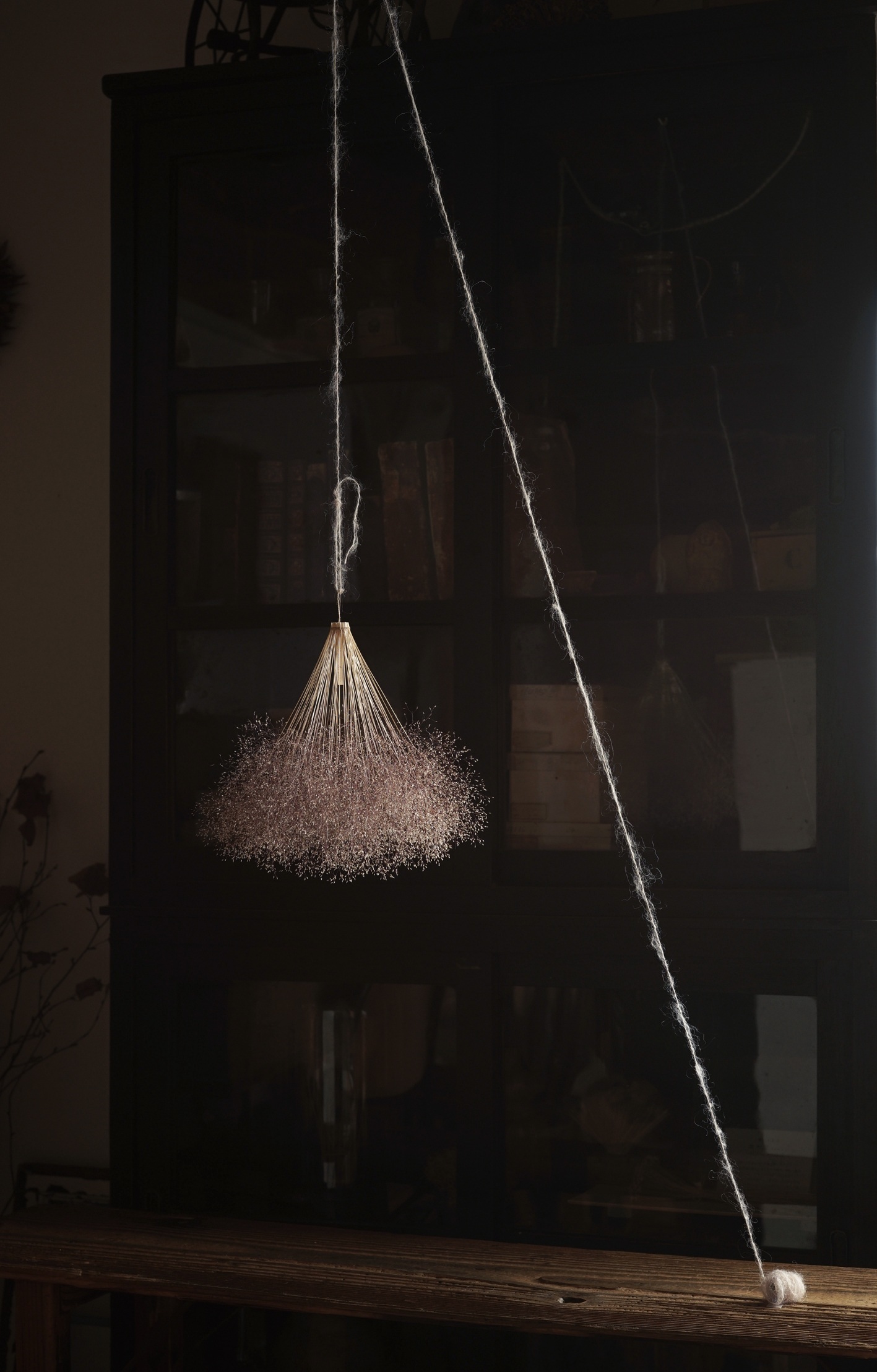 玄関やリビングの目線より高い所にも、シェルフ・棚・テーブルなどの上に浮いた感じに低く吊るしても、インテリアのアクセントになる。