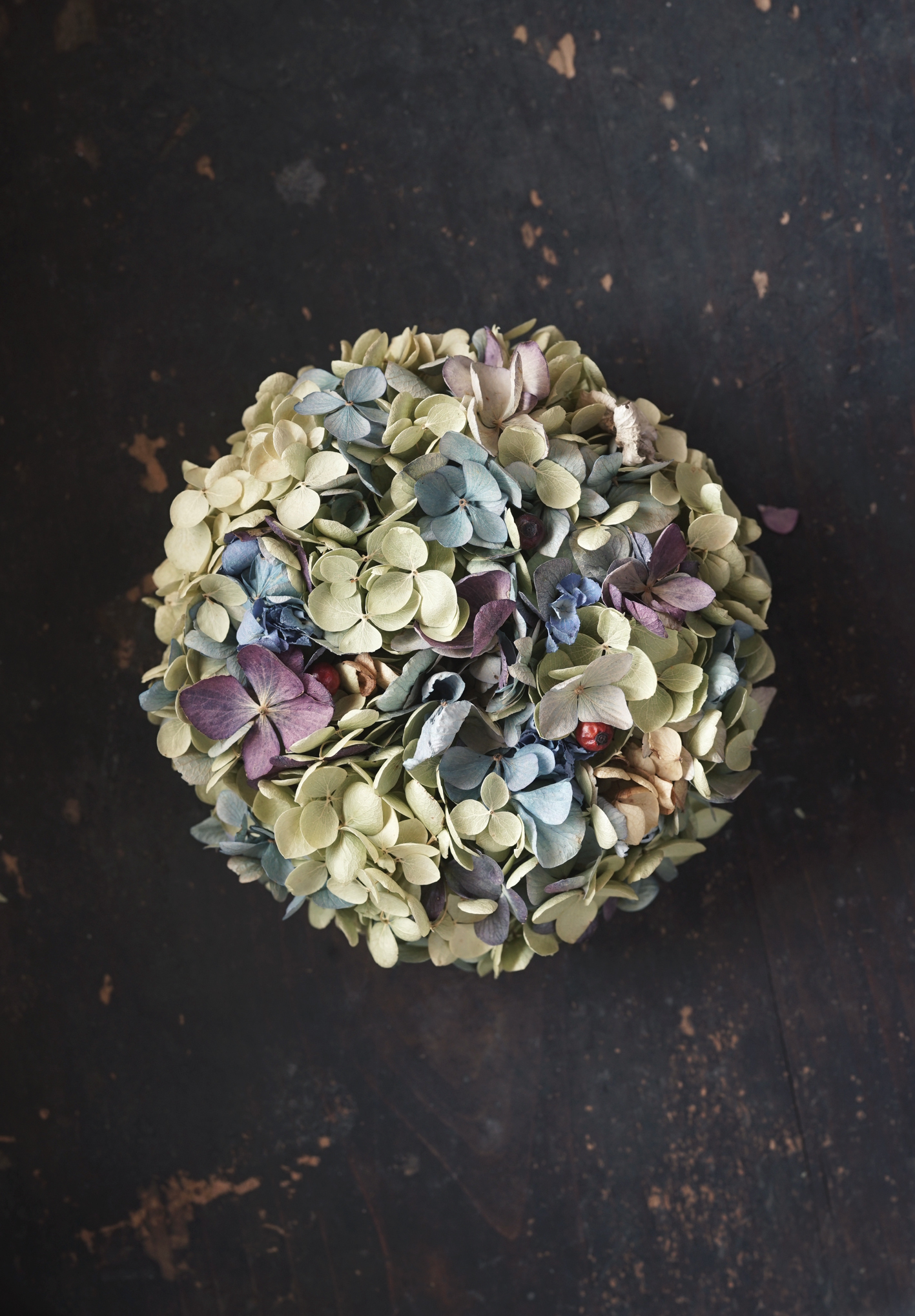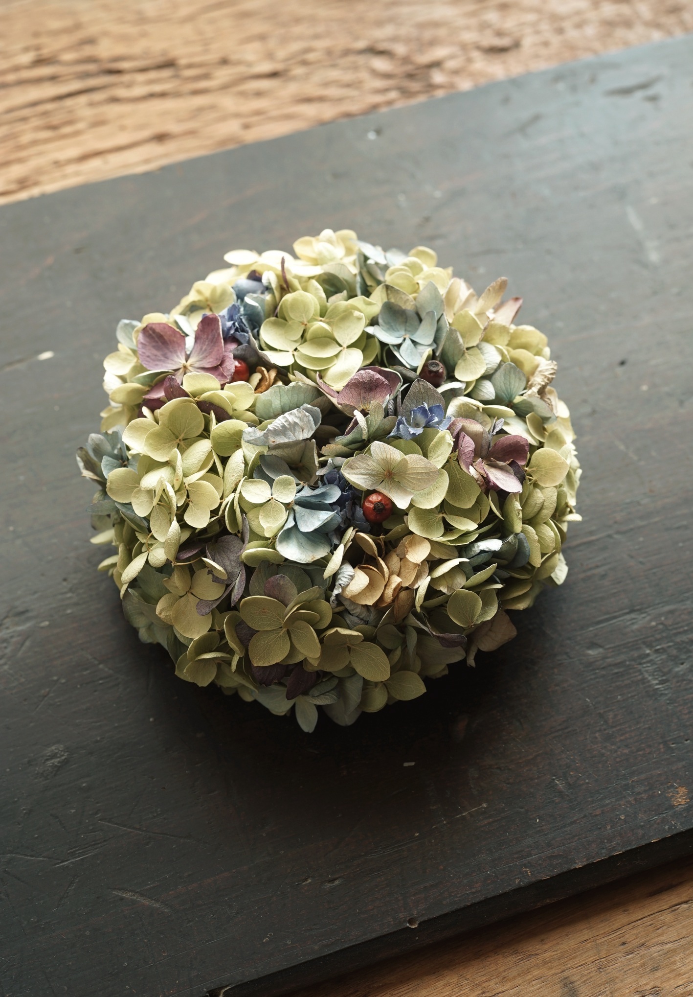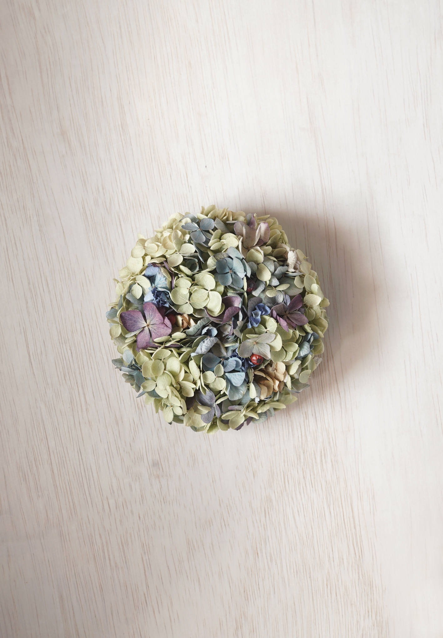 乾いた紫陽花(ドライ)を使った植物環<EN>。