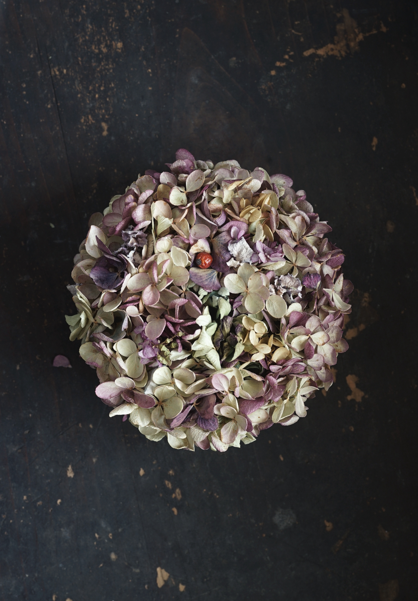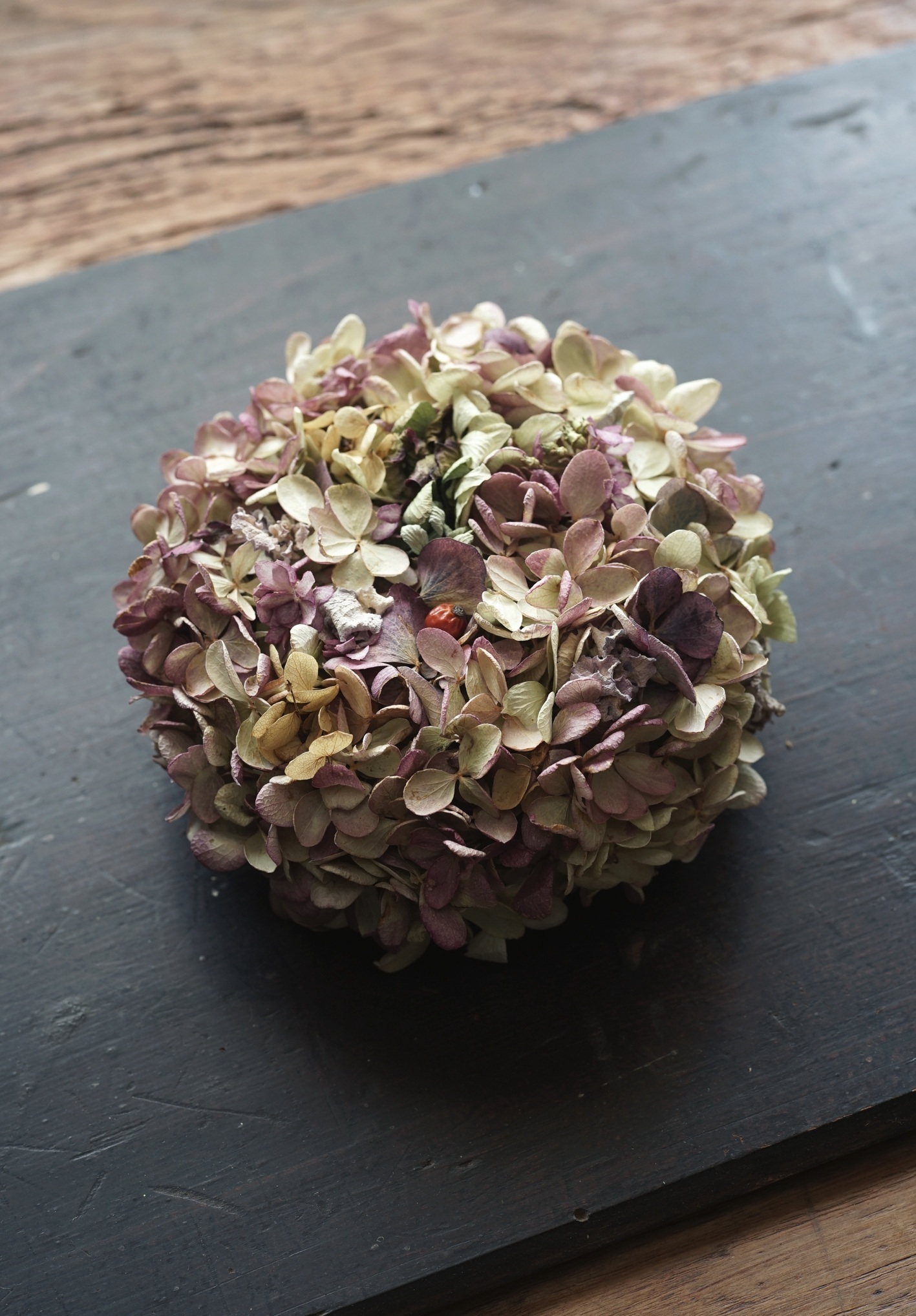 乾いた紫陽花(ドライ)を使った植物環<EN>。