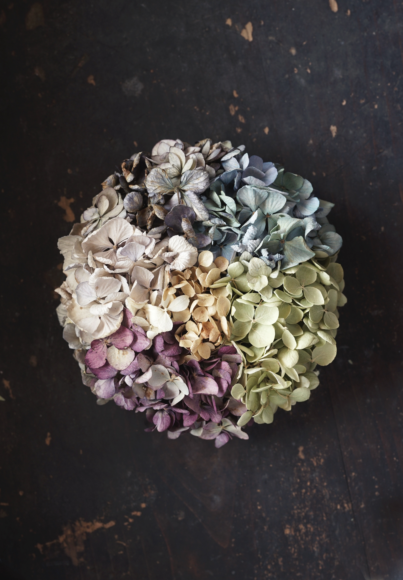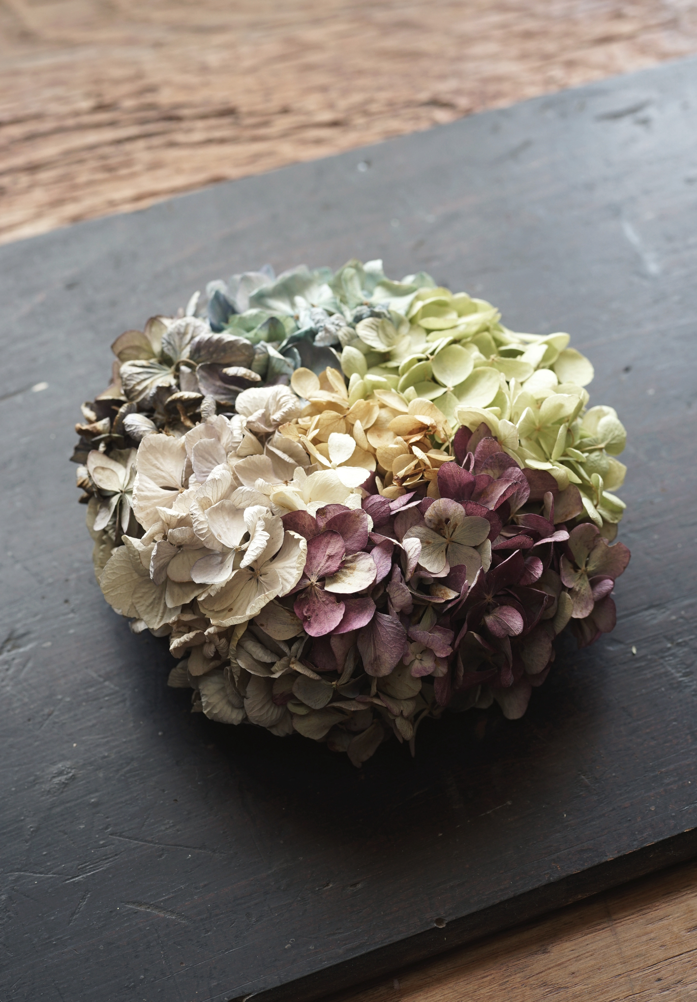 乾いた紫陽花(ドライ)を使った植物環<EN>。