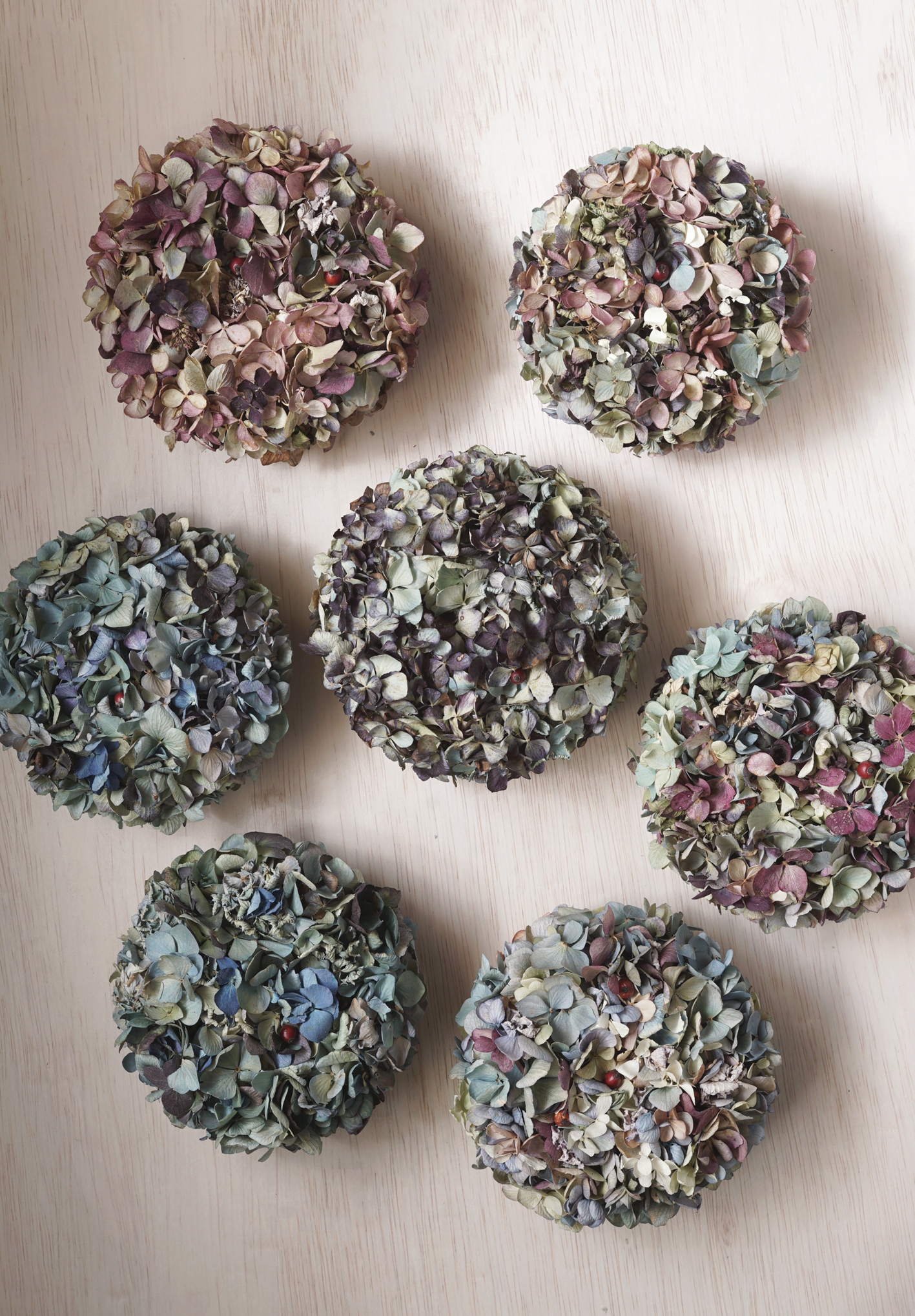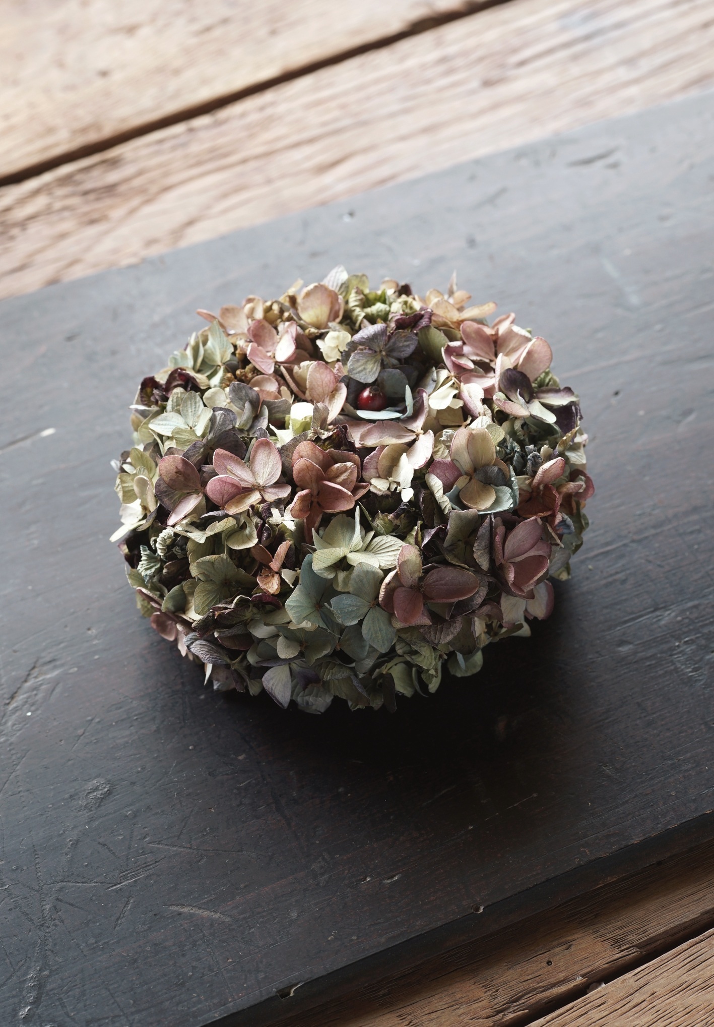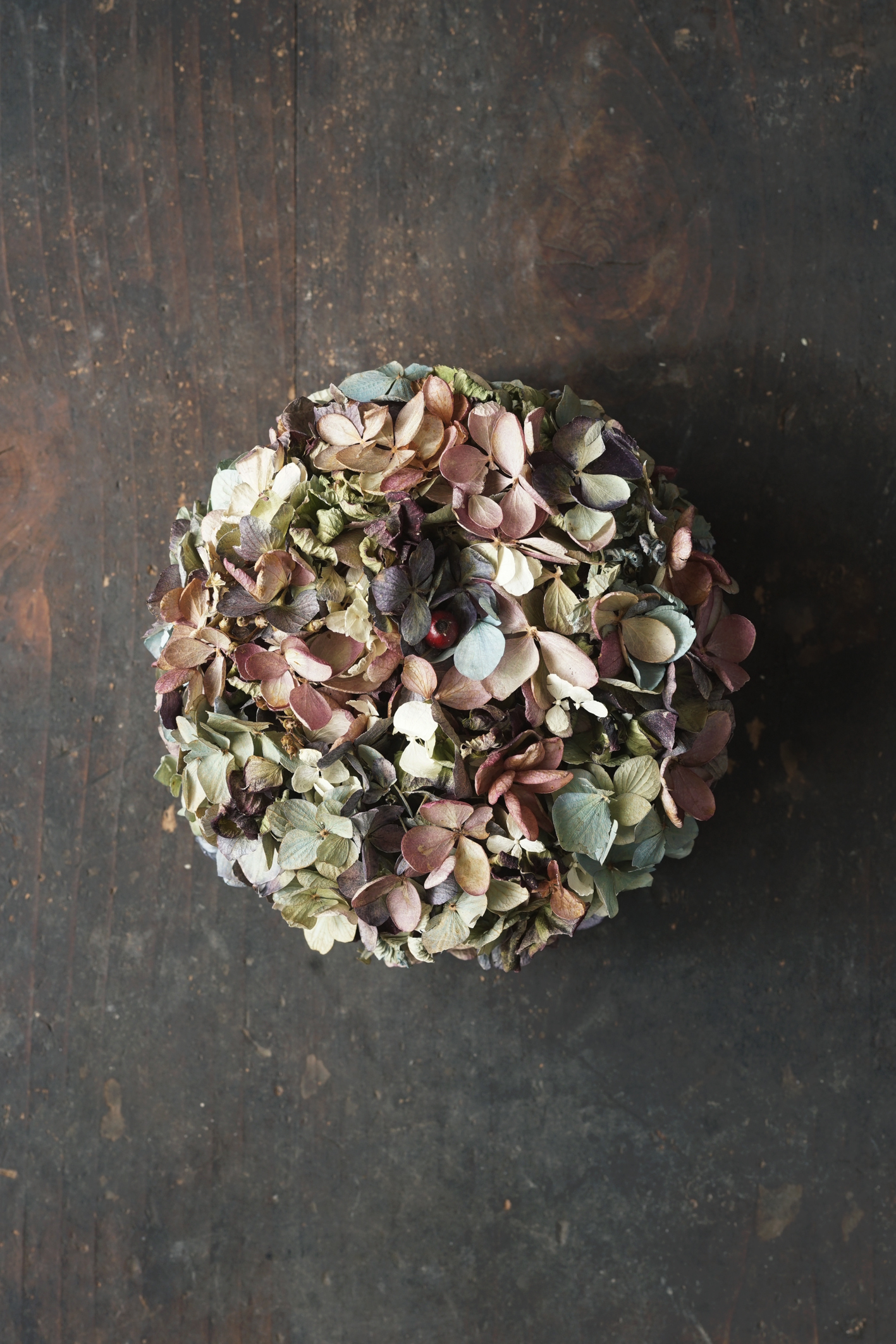 乾いた紫陽花(ドライ)を使った植物環<EN>。