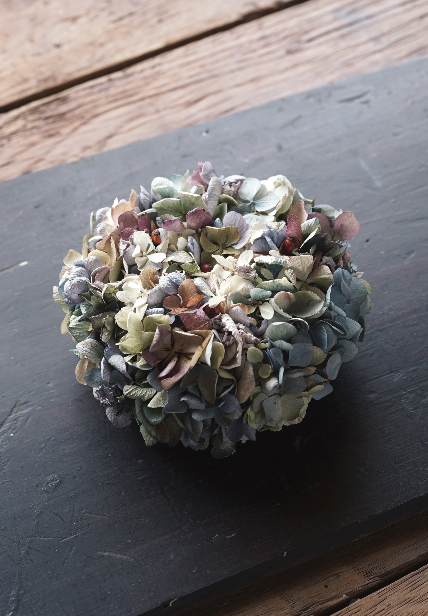 乾いた紫陽花(ドライ)を使った植物環<EN>。