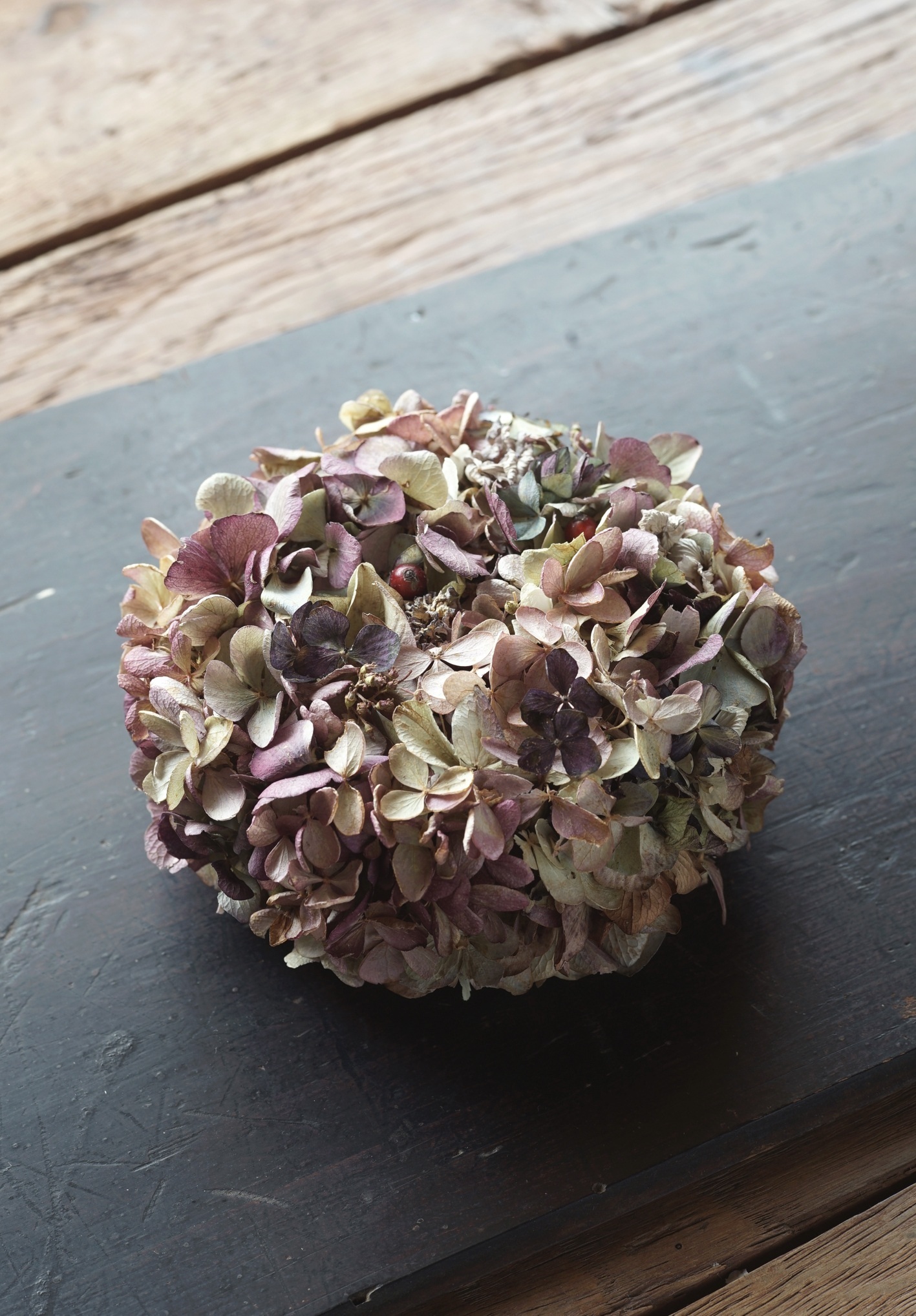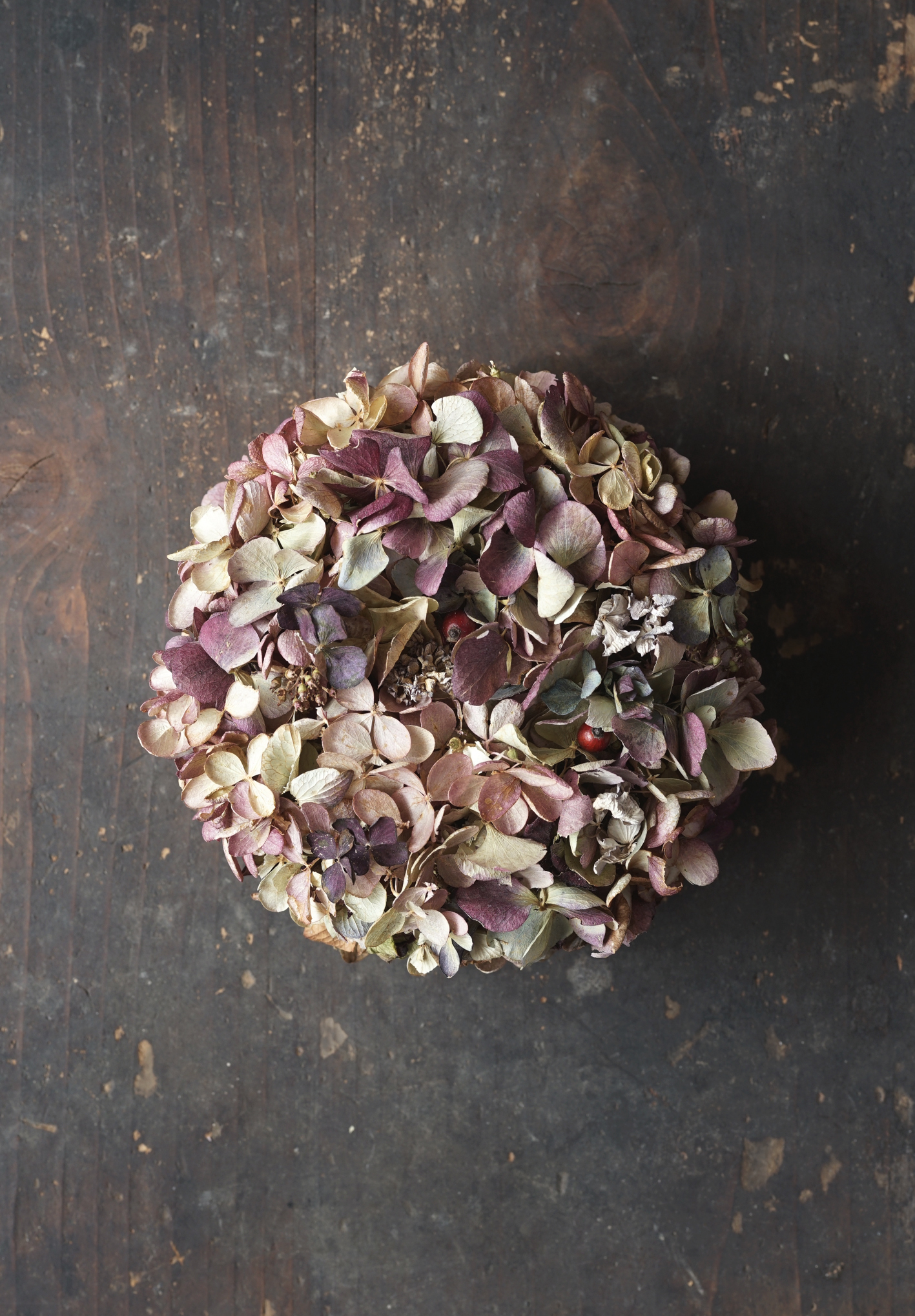 乾いた紫陽花(ドライ)を使った植物環<EN>。