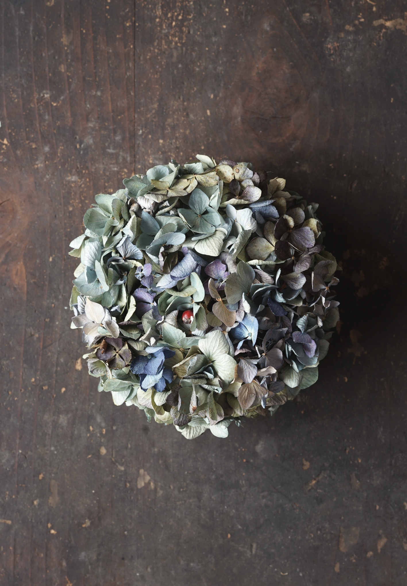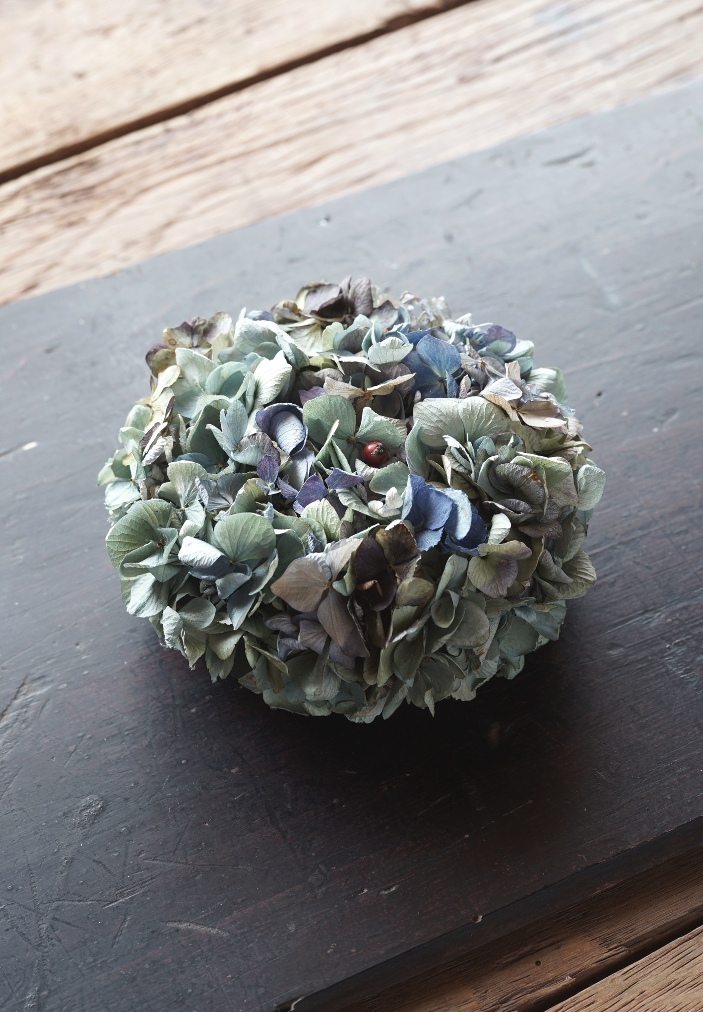 乾いた紫陽花(ドライ)を使った植物環<EN>。